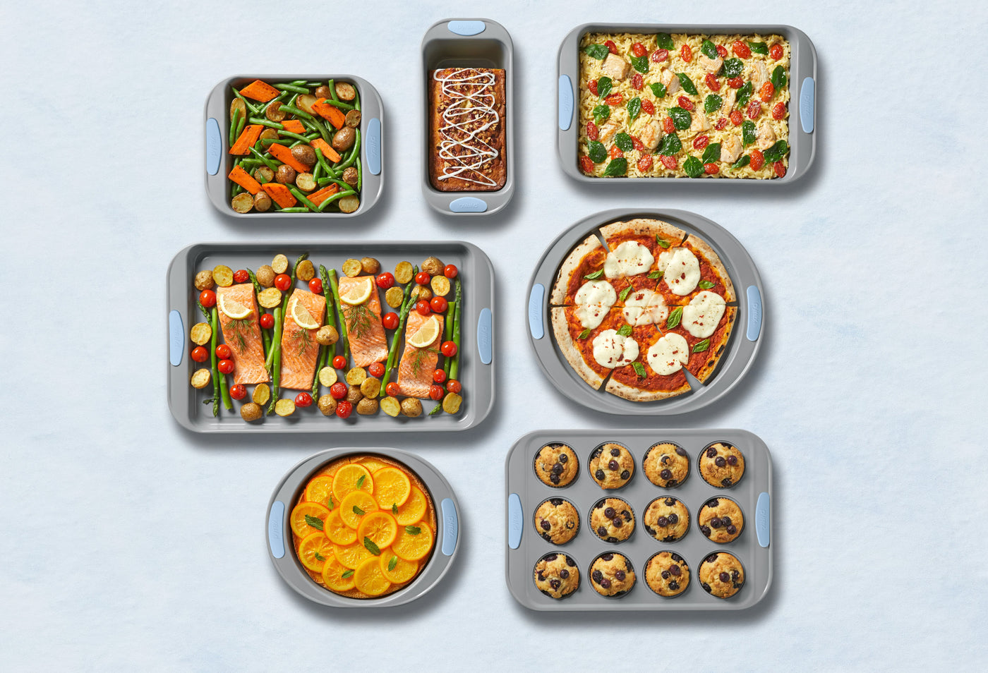 Meet Pyrex Metal Bakeware: built for performance with a dual-layer nonstick coating for easy release and cleanup, and finished with silicone handles for a secure, comfortable hold.