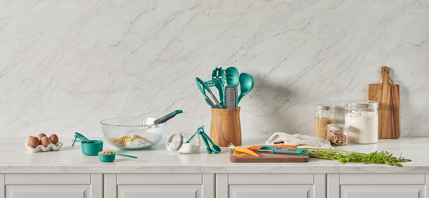 Pyrex® Sculpted Tinted Glass 3QT Oblong Baking Dish with Lid, Aqua